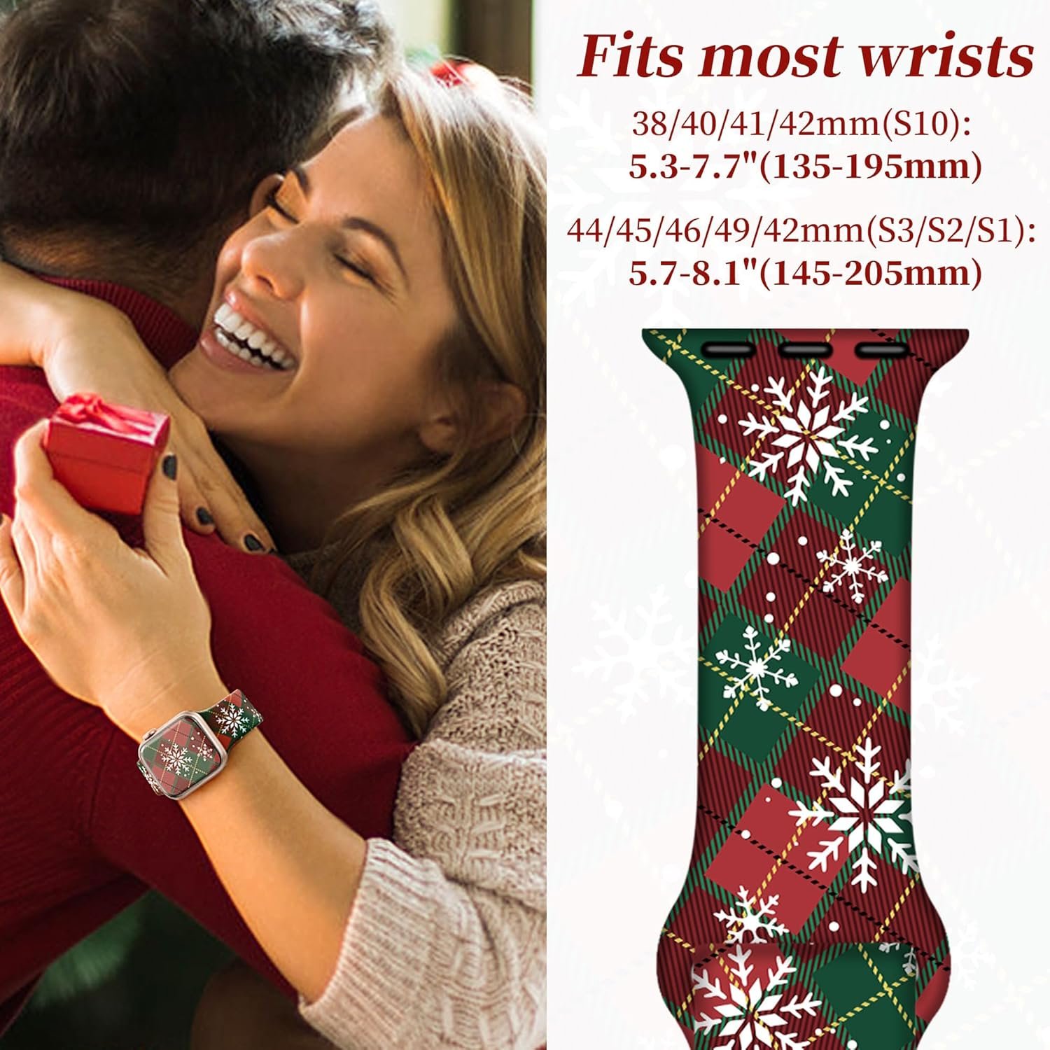 2 Pack Christmas Bands Compatible with Apple Watch Bands 46mm 45mm 44mm 42mm iWatch SE Series 10 9 8 7 6 5 4 3 2 1 Fancy Dressy Silicone Holiday Plaid Snowflakes Strap