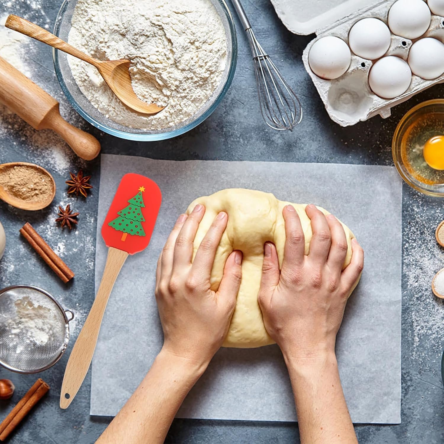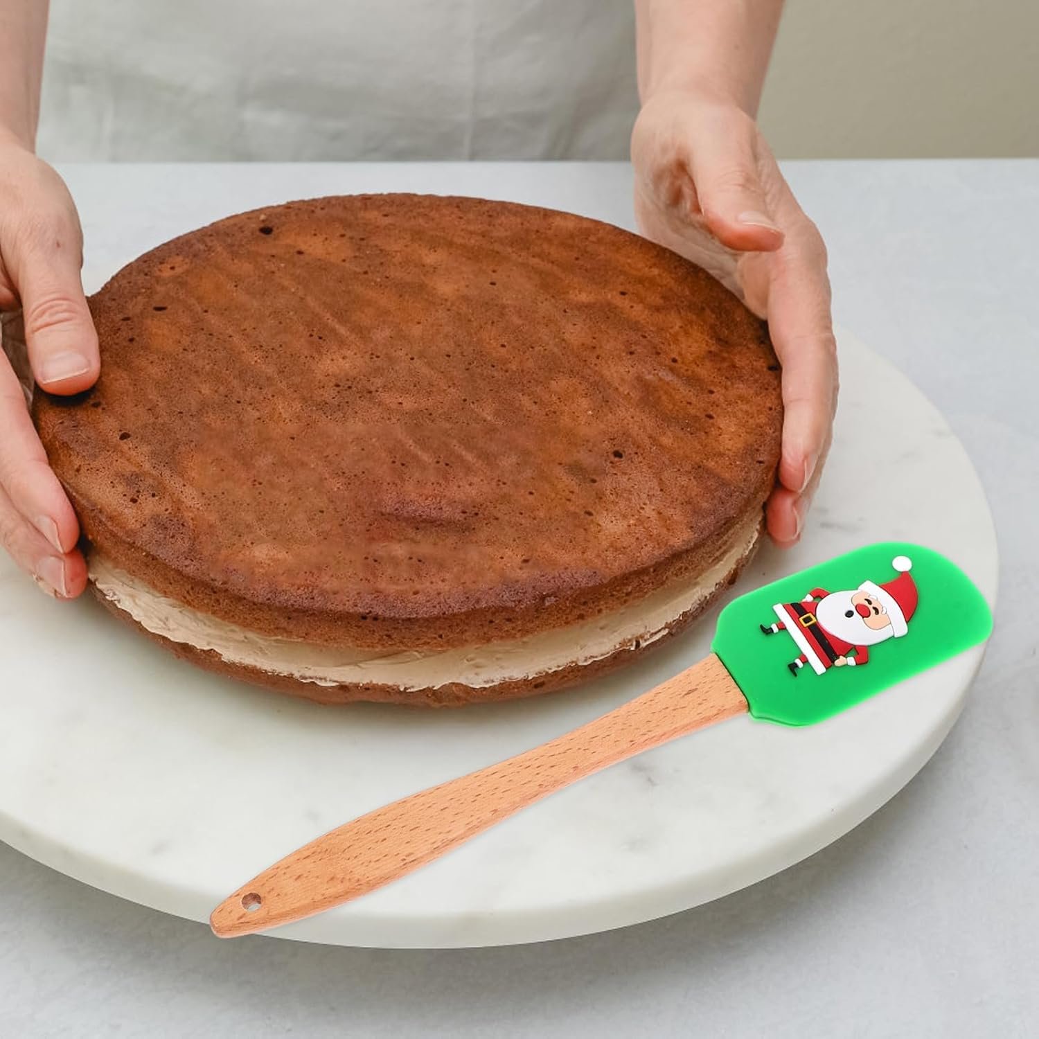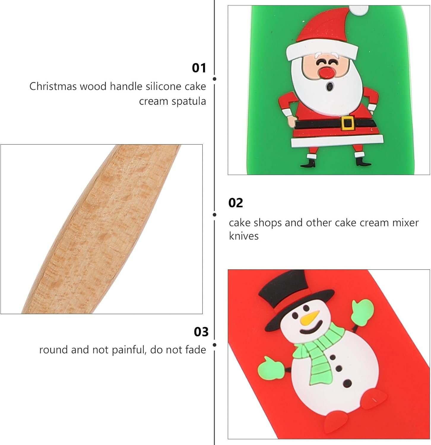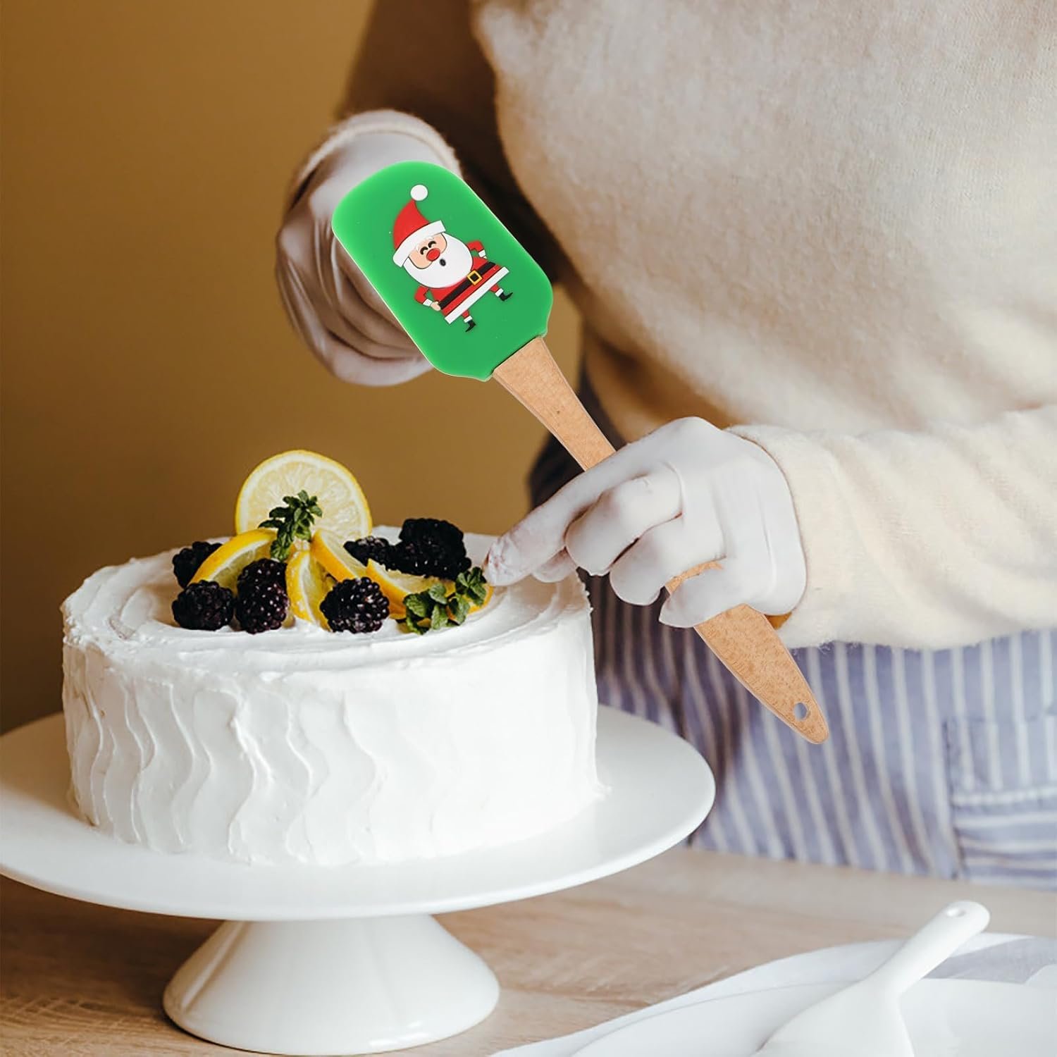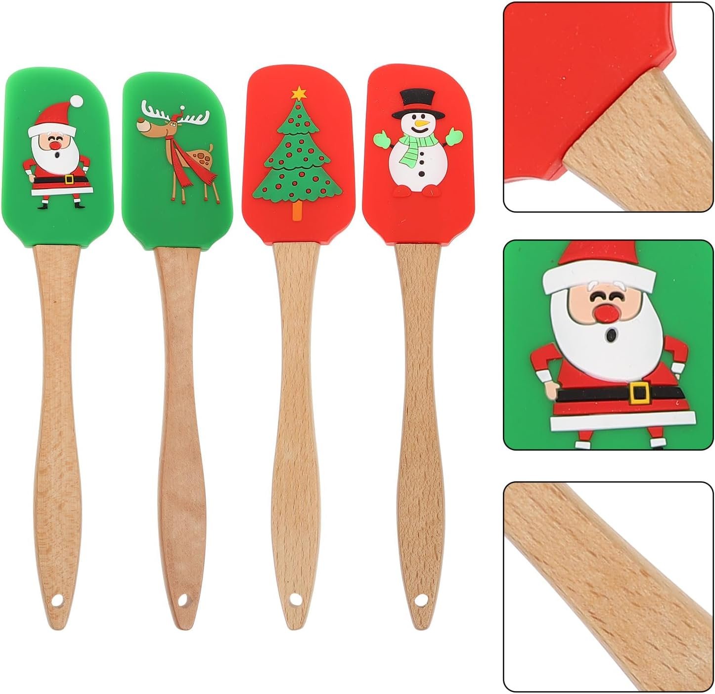 4Pcs Silicone Butter Scraper Cake Cream Mixing Scraping Silicone Spatulas Tool Christmas Theme Scraper with Wood Handle Kitchen Utensils Baking Tools