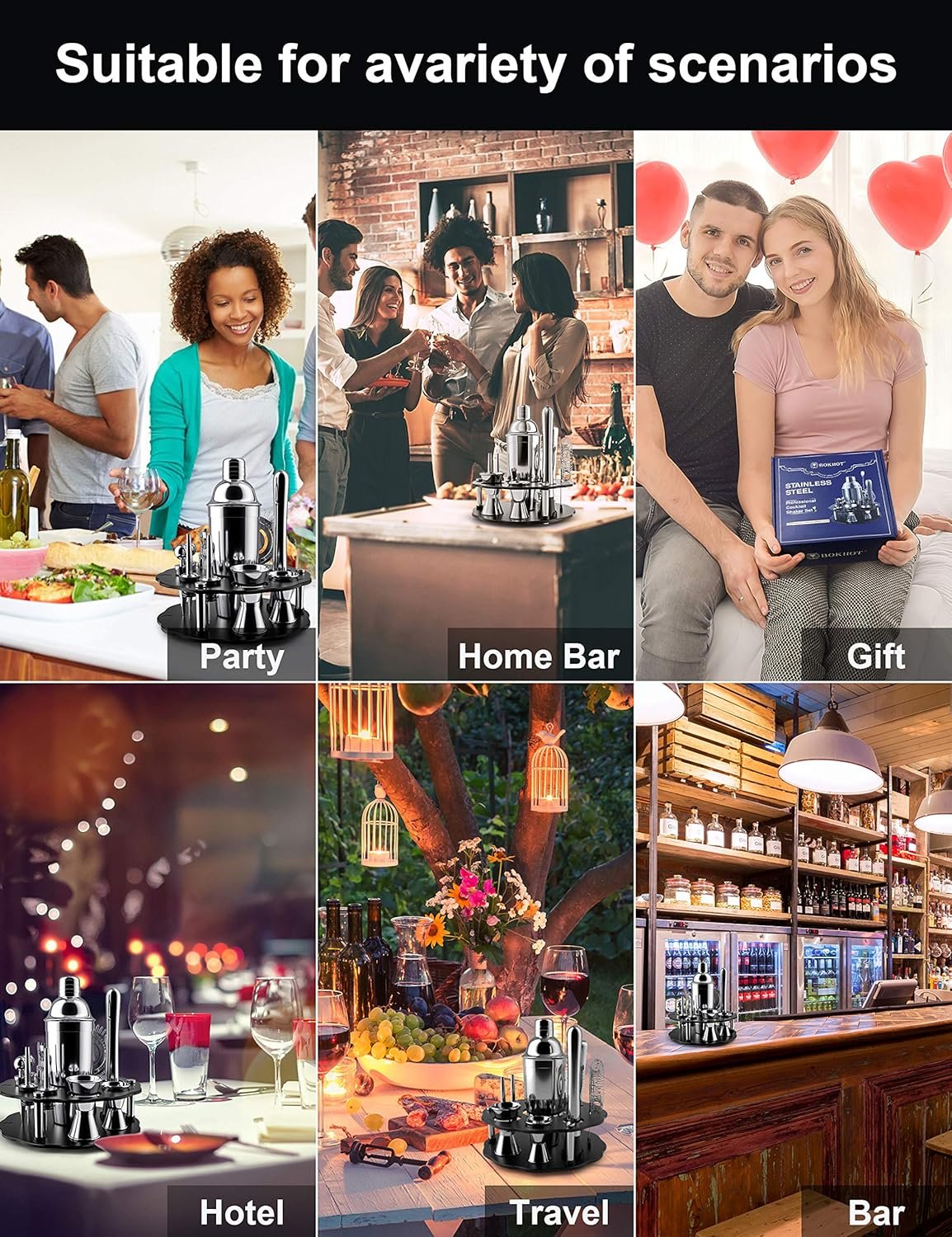 【Premium 304 Stainless Steel】Bokhot premium cocktail shaker bar tools set (14 piece) stainless steel bartender kit are made of premium stainless steel. Harmless to health, leak-proof, and non-scratchable, rustproof, not deformed and easy to clean, Stainless steel set is very easy to clean by hand with warm soap water and keep their shine with ease, Adding a modern, Sophisticated touch to your home bar.