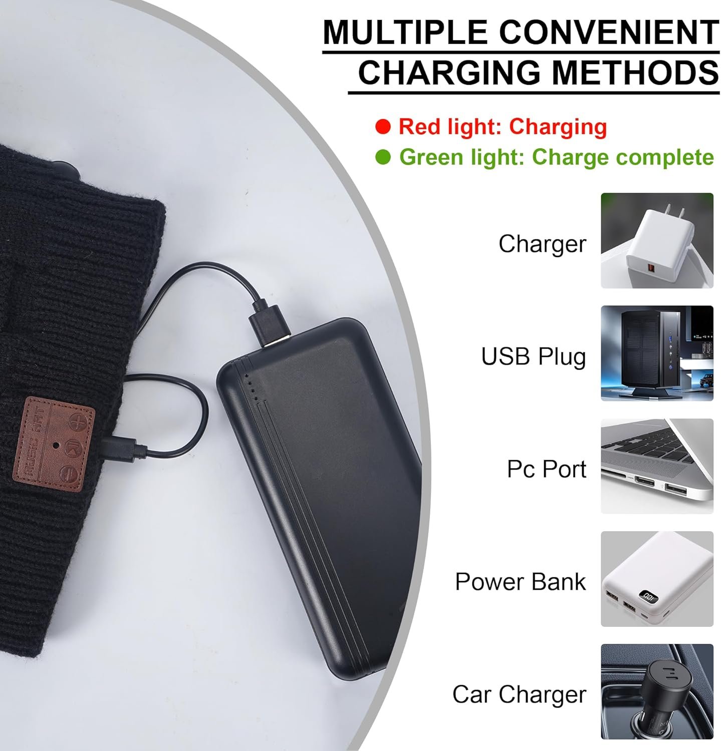 Bluetooth Beanie,Music Hat with Wireless Headphones,Built-in Microphone, Unique Tech Gift for Christmas Stocking Stuffer