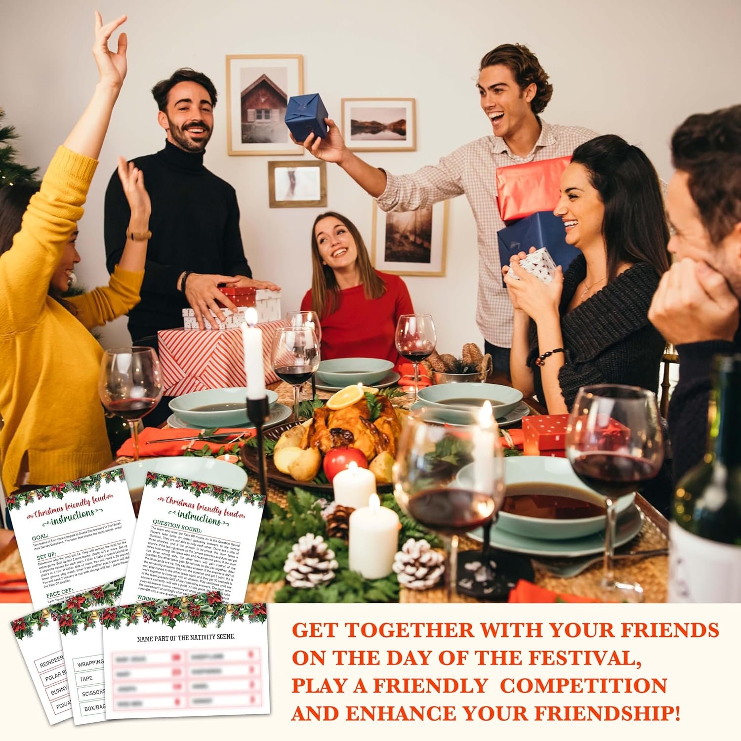 How to play: The set includes 2 instruction cards, which explain the game in detail. Use this fun and unique game to start a Christmas party with your family and friends!
