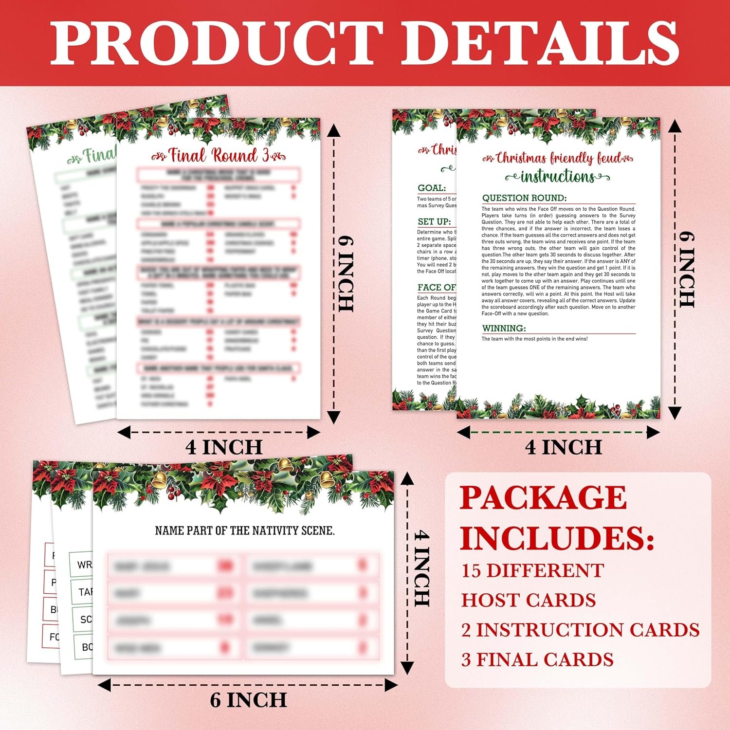 Suitable: Perfect for Christmas party, Holiday Party, Christmas Eve party, New Year party, Xmas party, family party, office Ice Breaker Activity! Add some Christmas cheer with this feud game! Make your holiday party full of laughter and challenges. Perfect for family party and holiday party, get ready for an unforgettable party time!