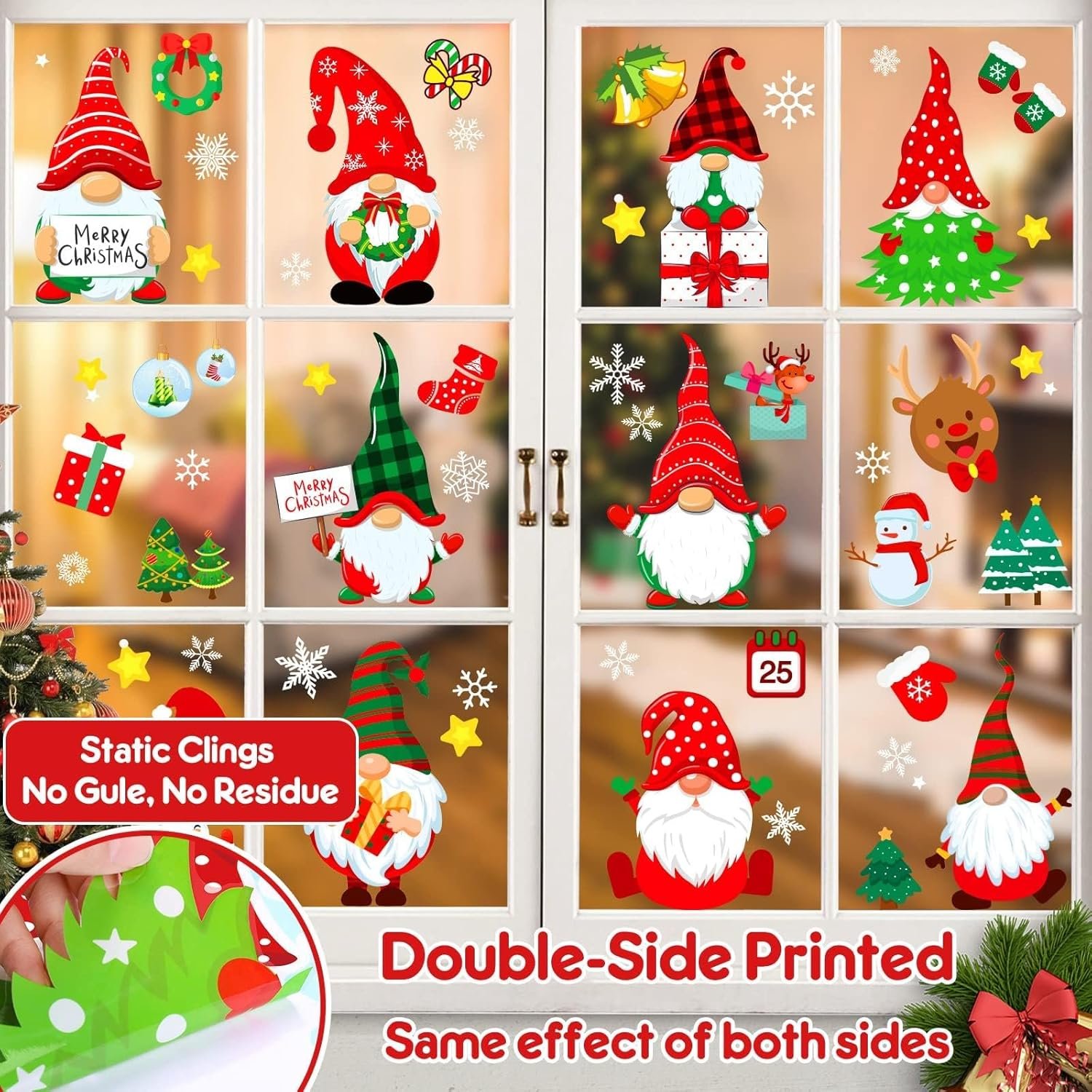 NO GLUE! NO MESS! REUSABLE!: Christmas window clings for glass windows, easy to put up without any gummy adhesive or tape, stick all by themselves. Easy removal without damaging the glass, leave no marks. Our Christmas window decals, made by high quality electrostatic membrane PVC material, reusable and durable to place it back on the base sheets, store it in a cool place for next year use