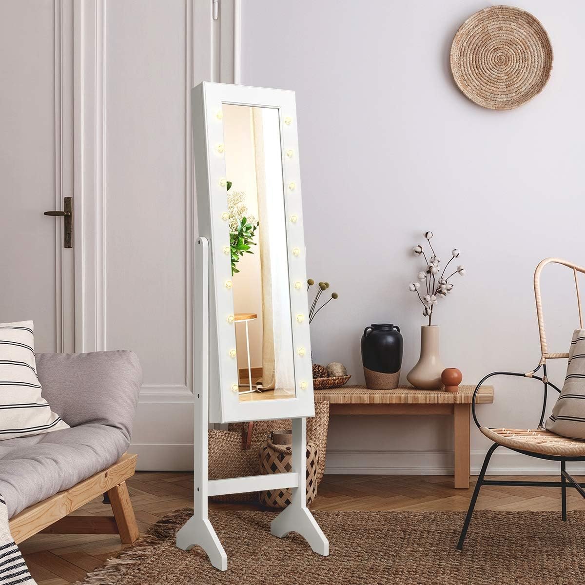 Jewelry Armoire with Full Length Mirror and LED Lights