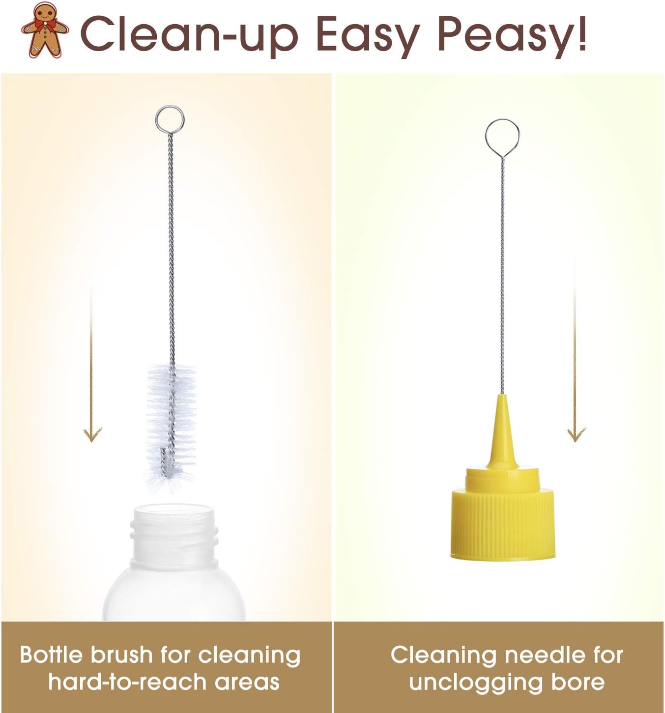 Easy to Clean – Just shake and rinse slightly with warm soapy water. Goloho royal icing tools for sugar cookie decorating supplies come with a brush for cleaning the bottles and a cleaning needle for cleaning tips. Please keep the caps on when not using to prevent the icing from drying out and causing any clogs.