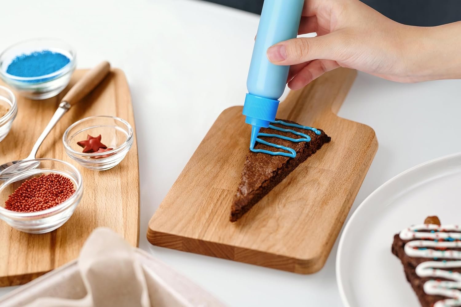 Premium Food-grade Material – Our squeeze dispenser bottle kit is made of low-density polyethylene (LDPE) plastic, the tip is polypropylene (PP), and the cap cover is polystyrene (PS). The bottles are soft and pliable and the size is perfect for your kids and you to use them to decorate Halloween/Christmas sugar cookies with royal icing and have a great time with the family cooking and decorating cookies!