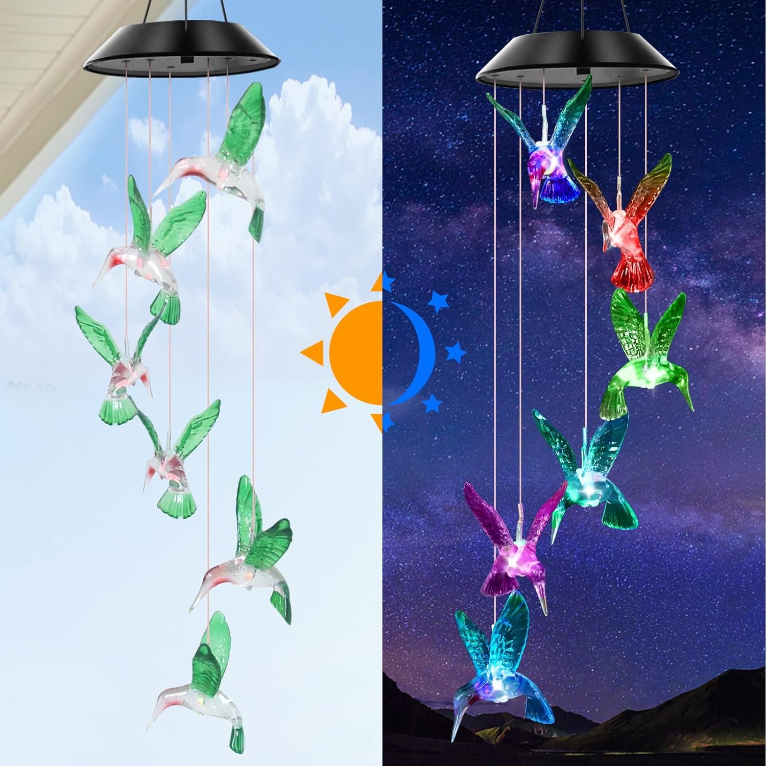 SOLAR HUMMINGBIRD WIND CHIMES LIGHTS