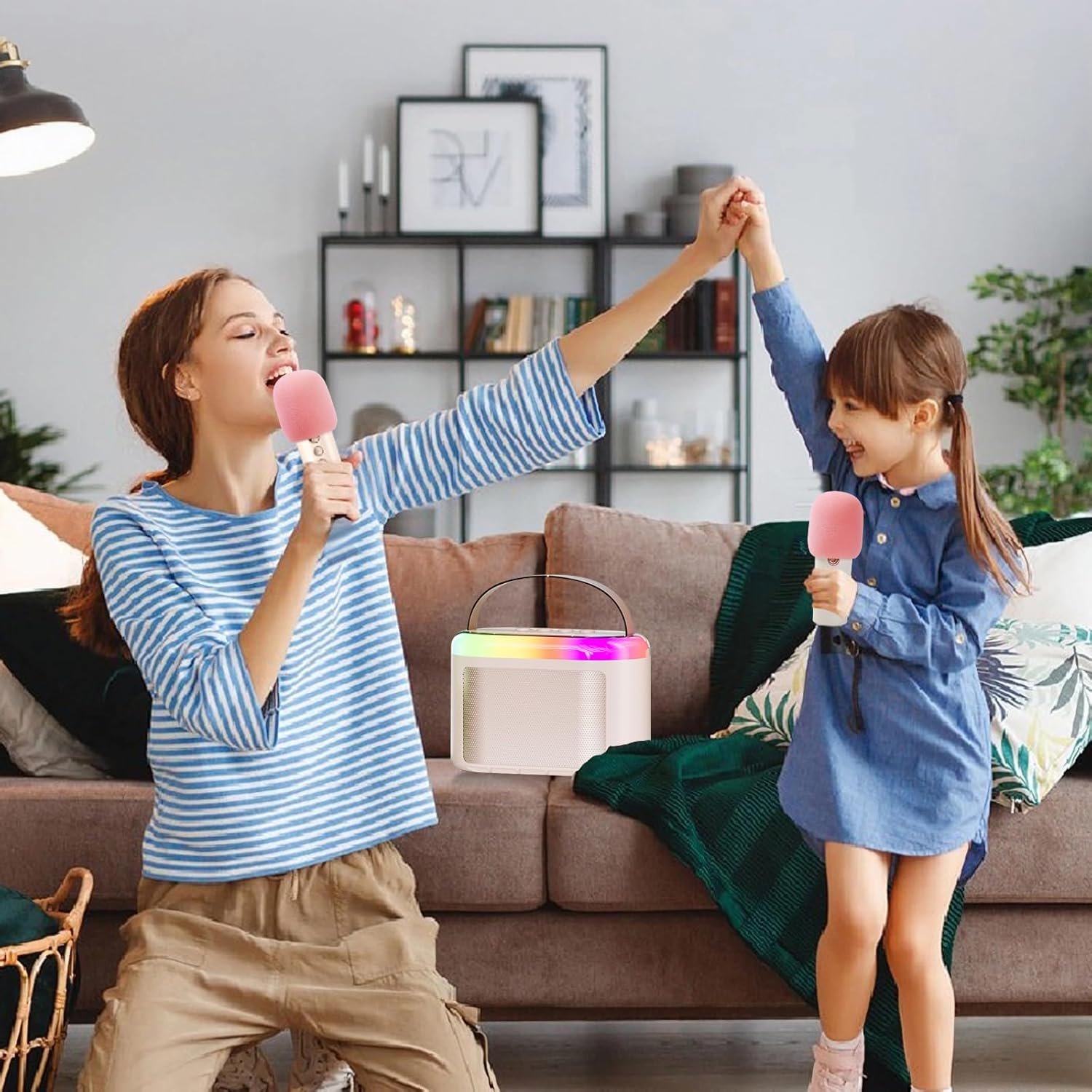 [Excellent Stereo Sound]: This mini karaoke machine adopts a DSP chip, equipped with advanced audio drivers and noise reduction technology, 3D surround sound is clear and loud, letting you enjoy the auditory feast!