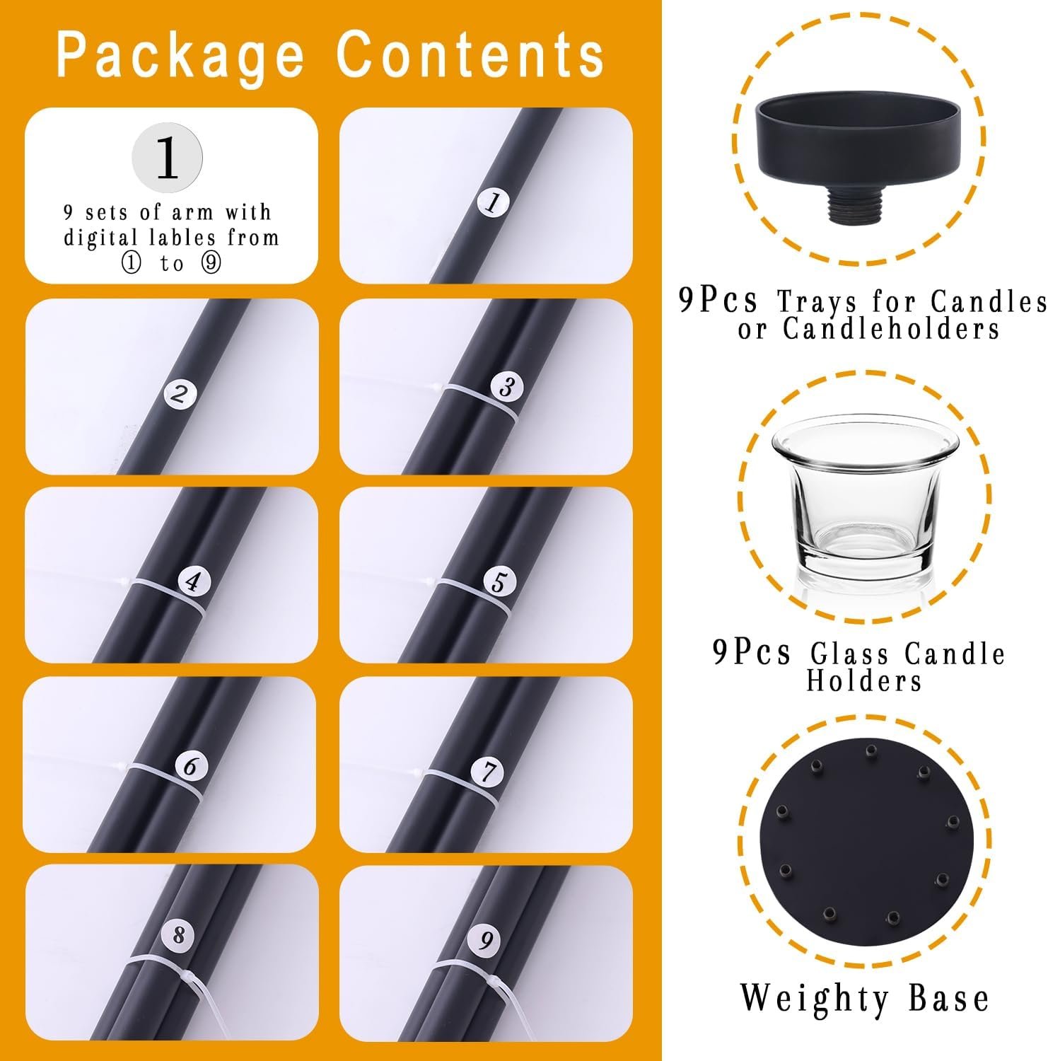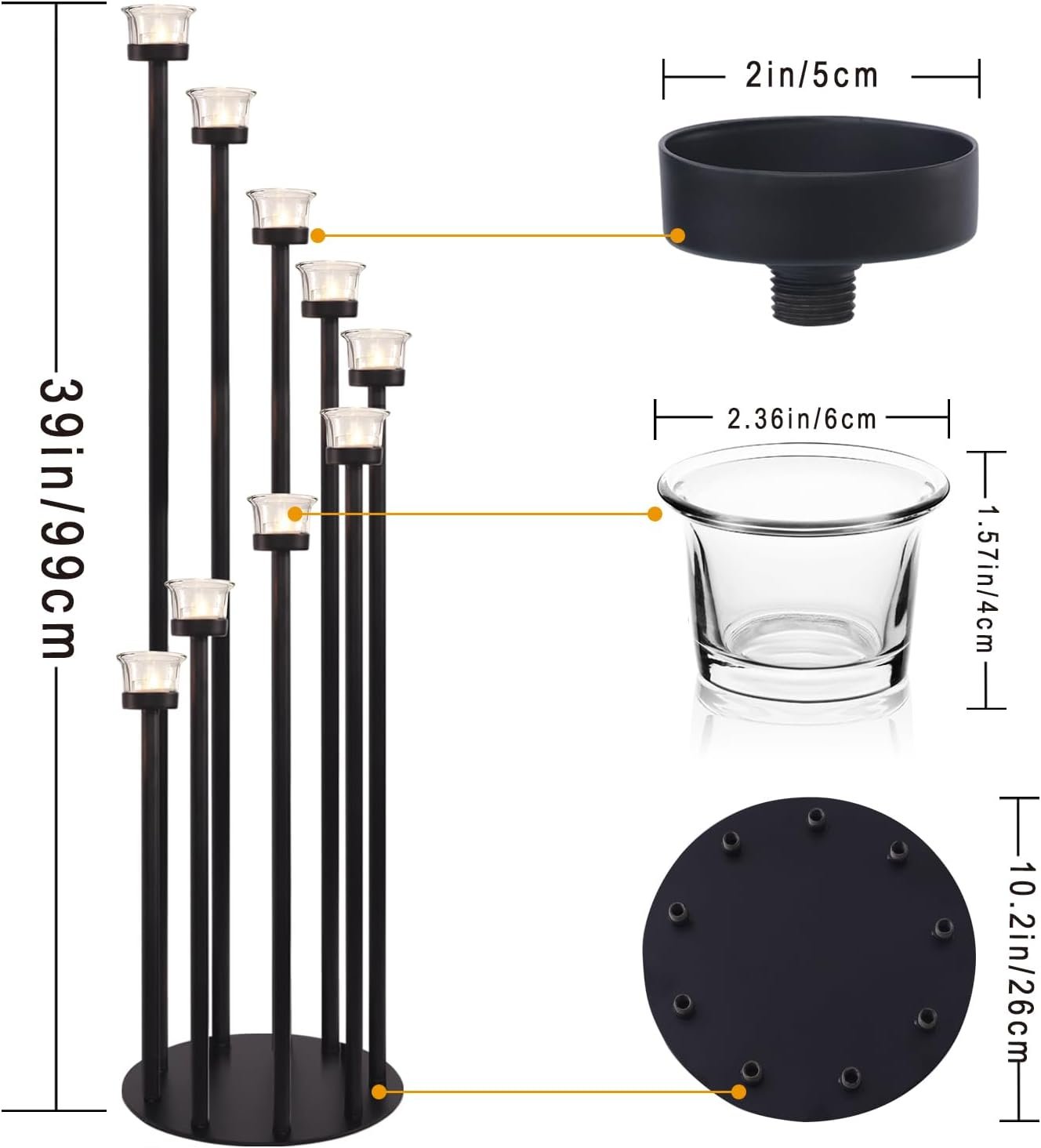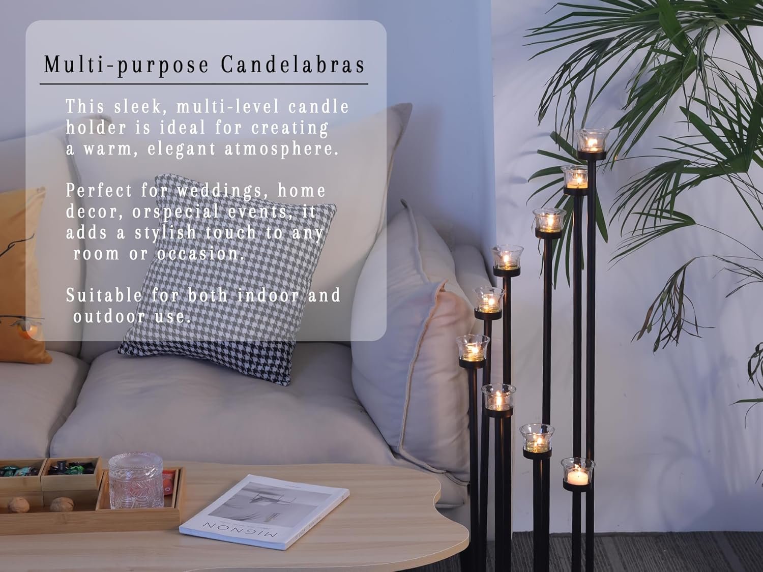 Candelabra with Glass Candle Holder: In addition to the Candelabra included in your package, you will also receive a set of 9 clear candle holders (we’ve added 3 extra holders to prevent damage during shipping). These candle holders are a perfect fit for the Candelabra and allow you to use tealight candles, providing an alternative decorative option to pillar candles.