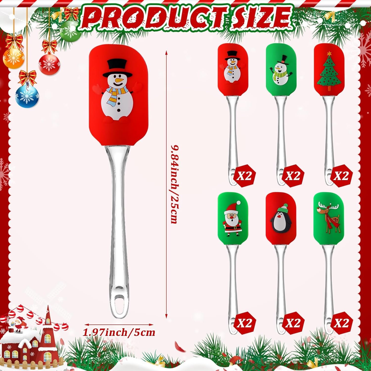 Enhancing Holiday Atomosphere: the color scheme of these Christmas cooking utensils, using mainly red and green, shows a warm Christmas atmosphere in your kitchen; The different patterns on each spatula can draw attention and make holiday baking enjoyable