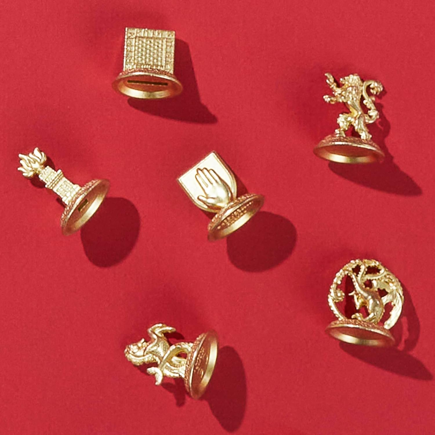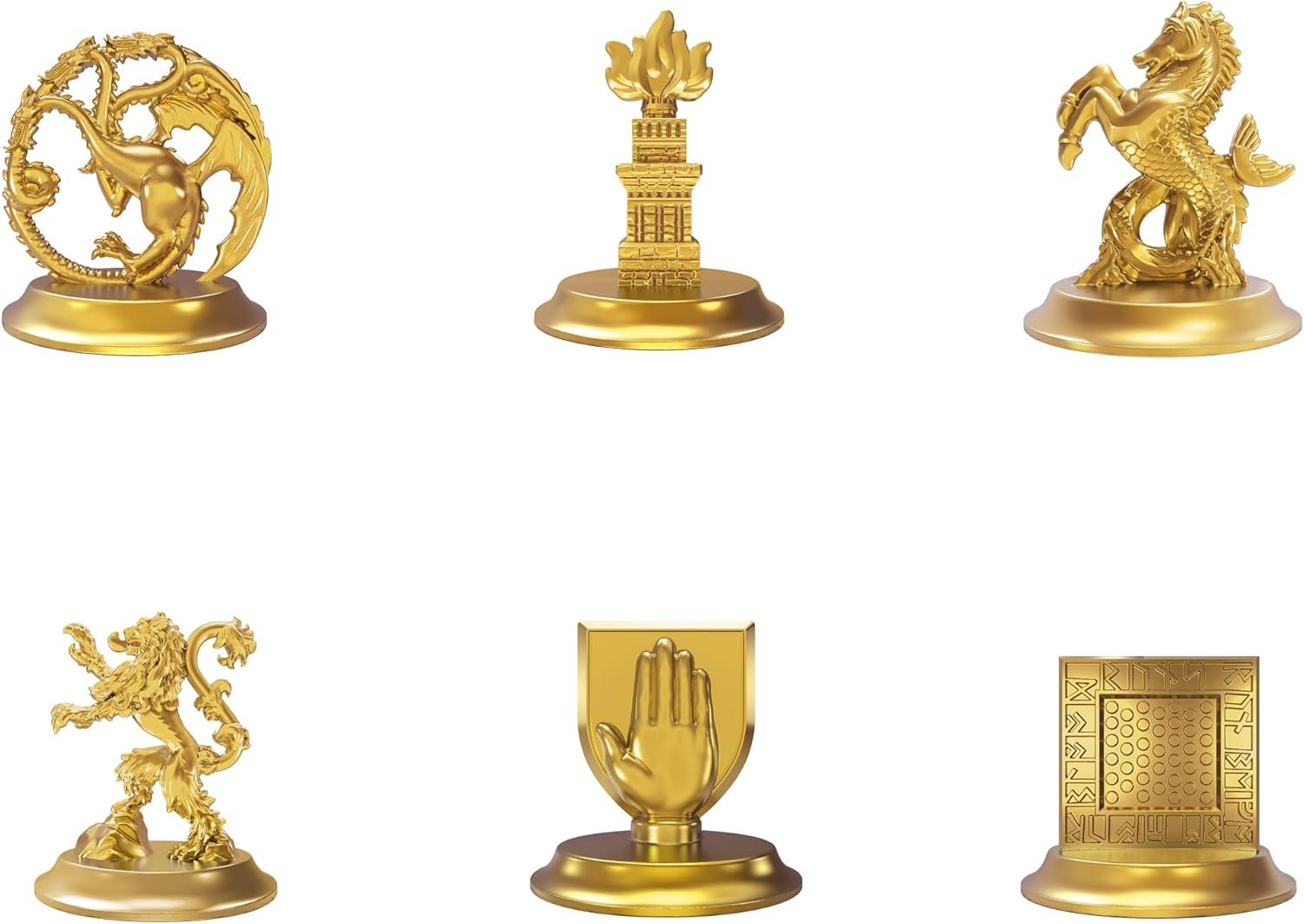 6 GOLDEN ZINC TOKENS: Includes 6 golden game tokens: House Targaryen, House Hightower, House Velaryon, House Lannister, House Strong, and House Royce. Who will you pledge loyalty to.