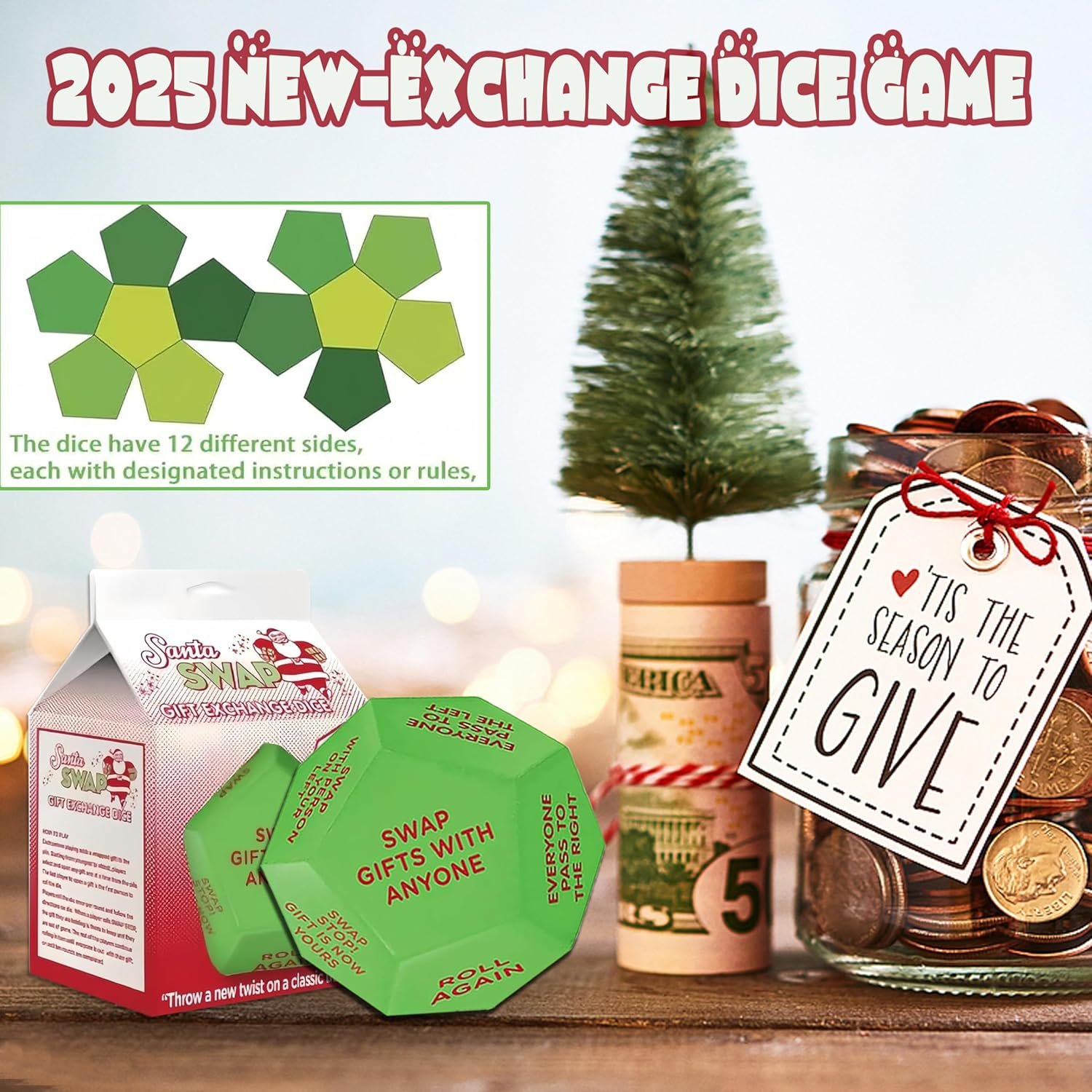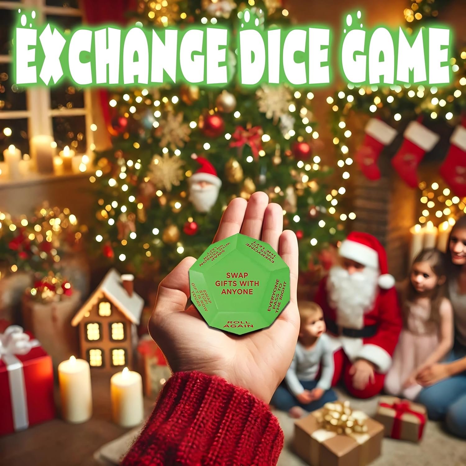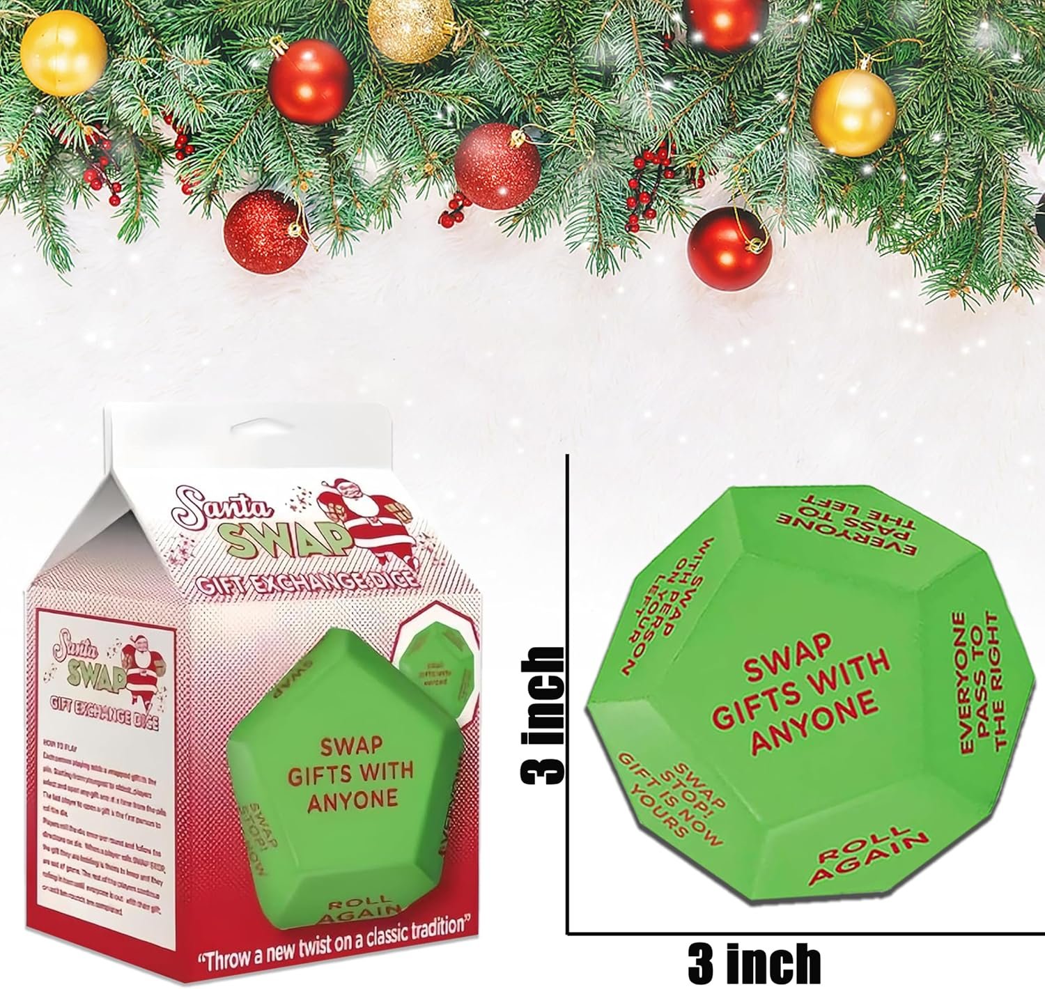 【Funny Interactive Games】santa swap gift exchange dice is the perfect addition to a Christmas party. It has 12 Different Sides, which can bring unique and exciting game experience for everyone