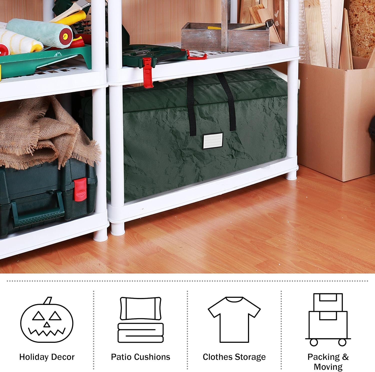 CONVENIENT CARRYING – Sturdy nylon handles on each Christmas tote make them simple to carry into attics and storage sheds. You can also label each Christmas tree storage bag, so you’ll know where everything is when it’s time to put up holiday decorations.