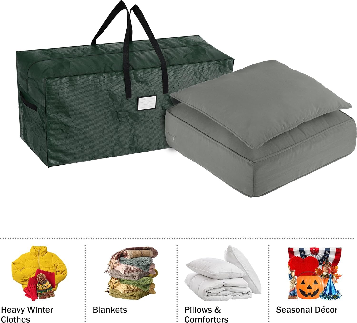 PROTECTIVE DESIGN – The tear-proof poly material of this Christmas tree storage cover set protects your holiday decorations from mildew, vermin, and dust. The zipper closure of each attic storage bag secures contents while making them easily accessible.