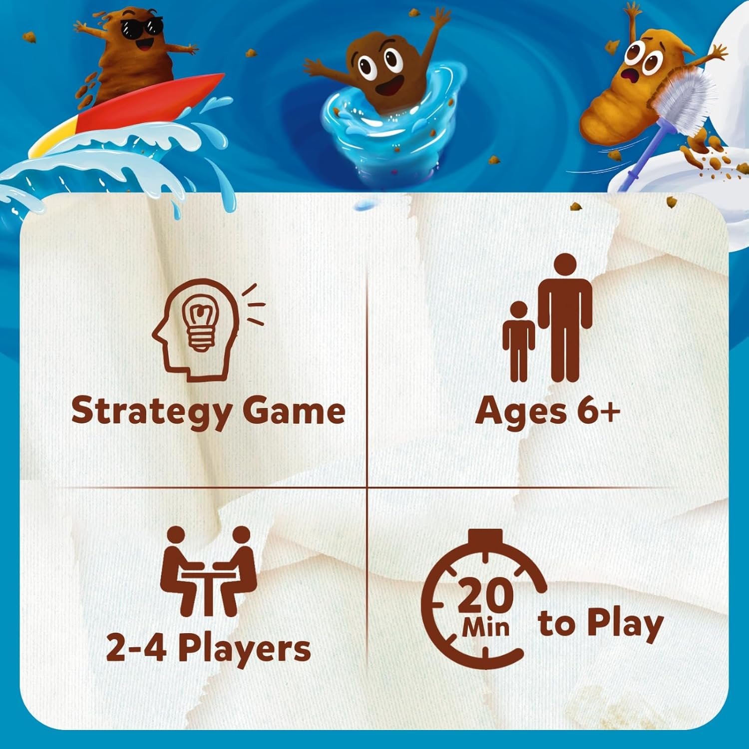 INCLUDES: Enjoy a complete gaming experience with 20 Game Cards, 12 Wooden Poop Pieces, 6 Action Cards, Wooden Die, Sewage Swirl, and an Instruction Manual. Everything you need for endless hours of poop-tastic fun!