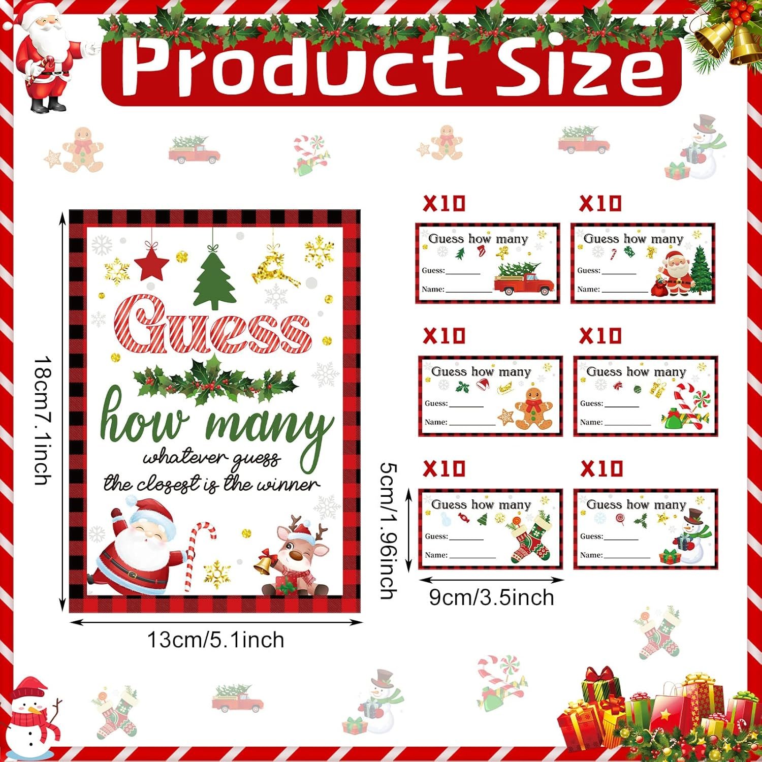 What You Receive: the package includes 1 piece of large guess how many cards and 60 pieces of small guess how many cards in 6 designs, and each style had 10 pieces guessing cards, enough to meet your holiday party game needs