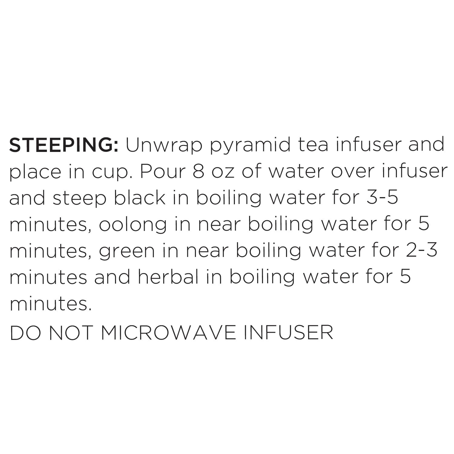 HOW TO STEEP – Unwrap the Pyramid Infuser, steep in hot water, and reveal the exquisite nature of the whole leaf teas. Allows the tea leaves to fully unfurl in the water, resulting in a most flavorful cup of tea. Do not microwave pyramid.