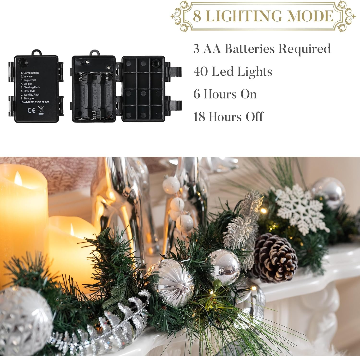 【8 Lighting Effects】This garland features 20 warm yellow LED lights and a switch button with 8 options for selecting various lighting effects. It allows you to create a warm and festive atmosphere for Christmas
