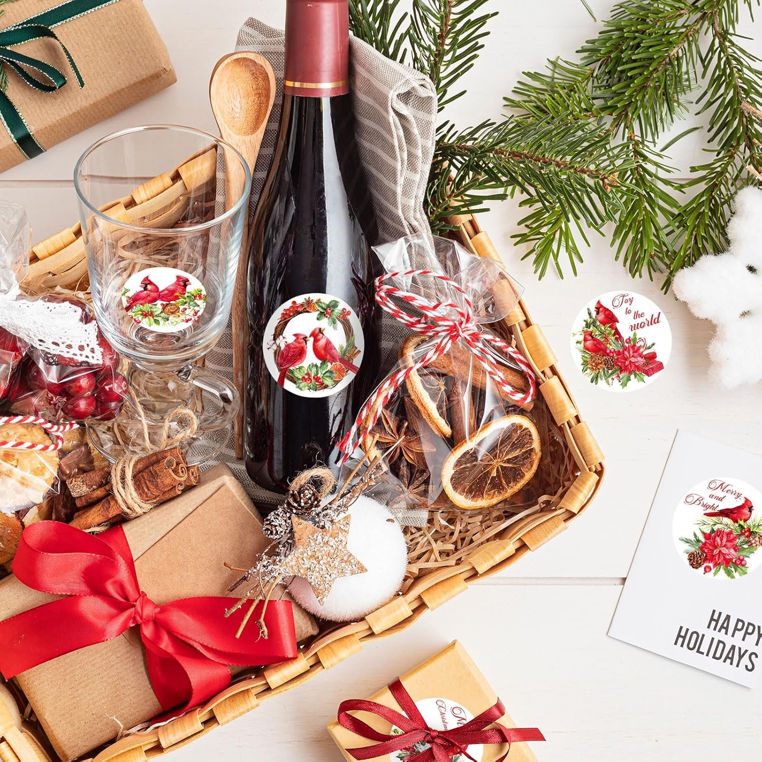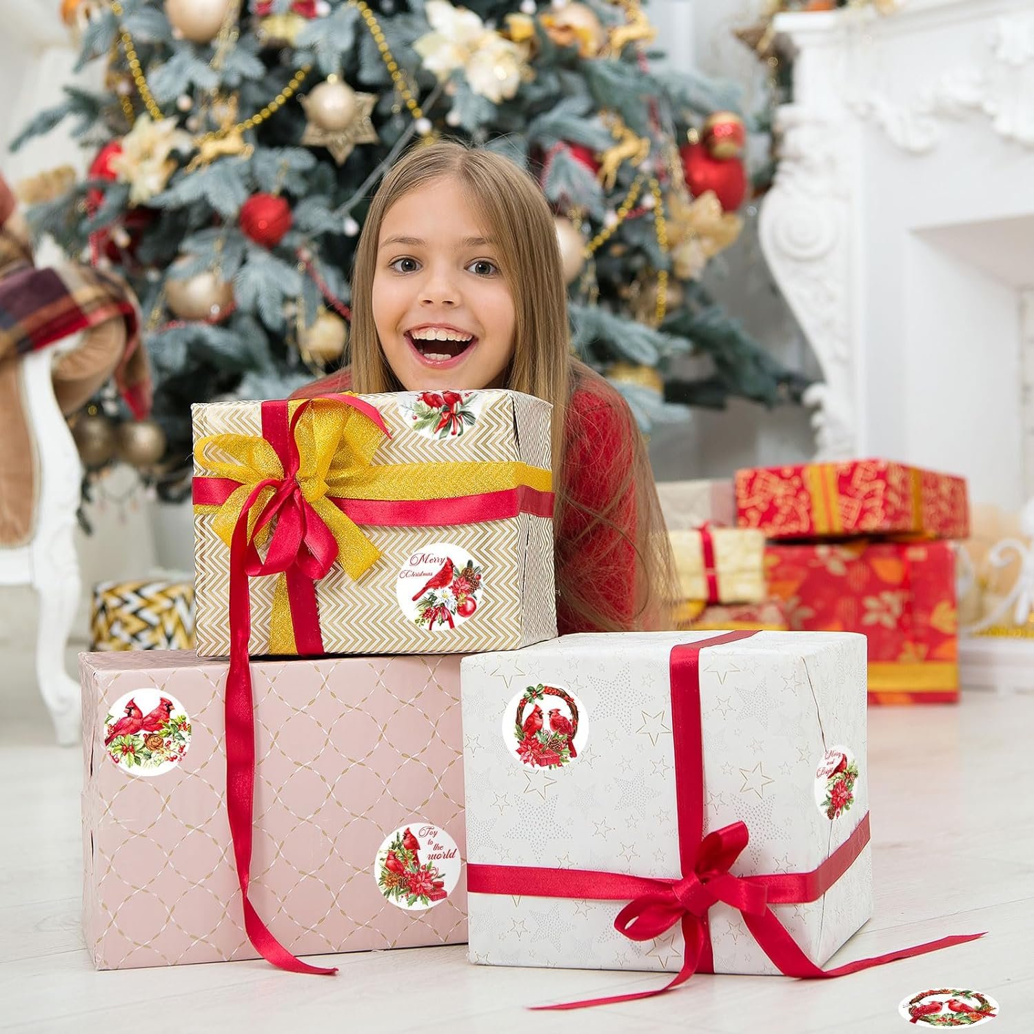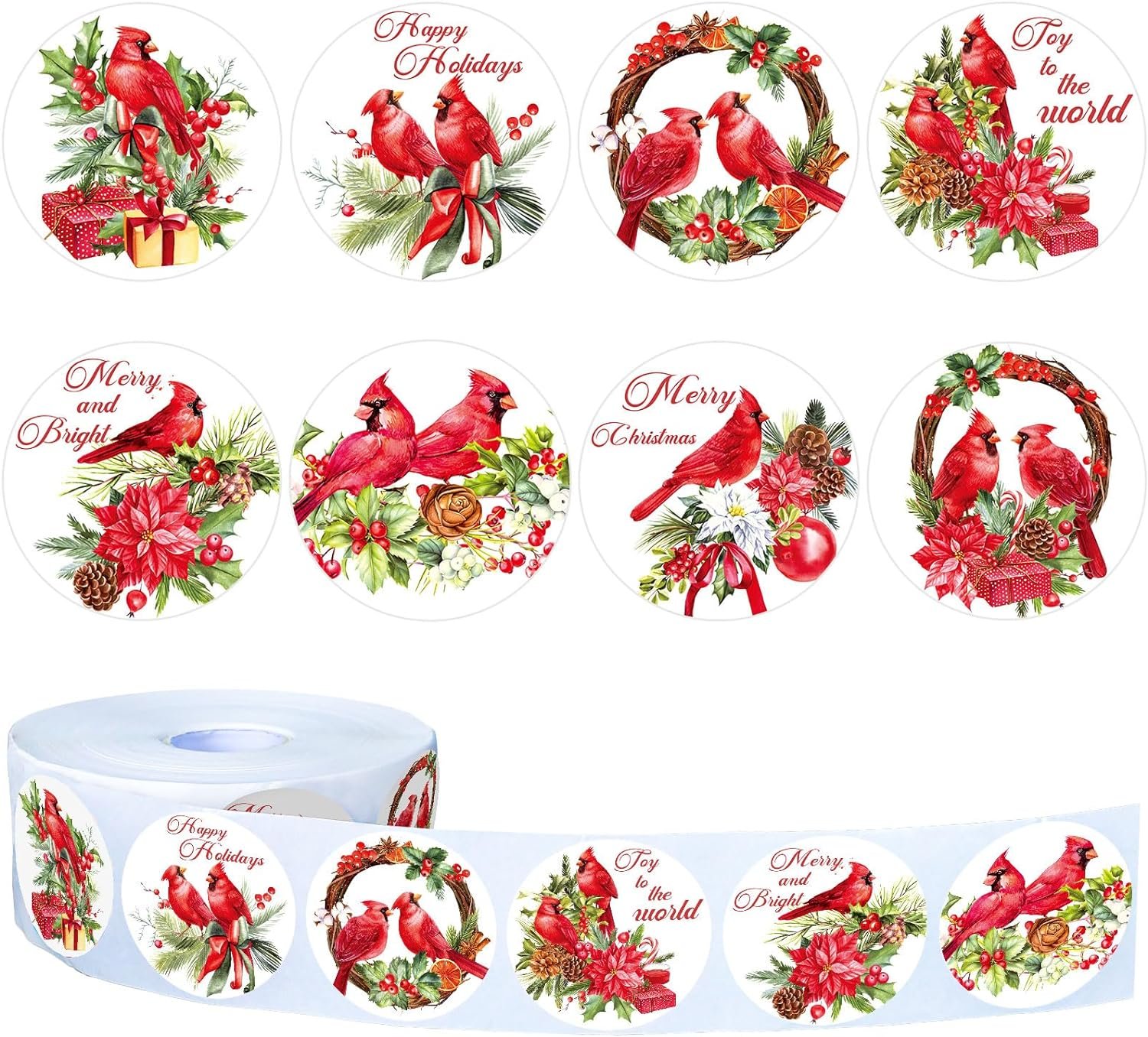 1000pcs Christmas decals patterned with cardinal and garland, printed with the festive words, exquisite and unique, will be great decorations for Christmas.